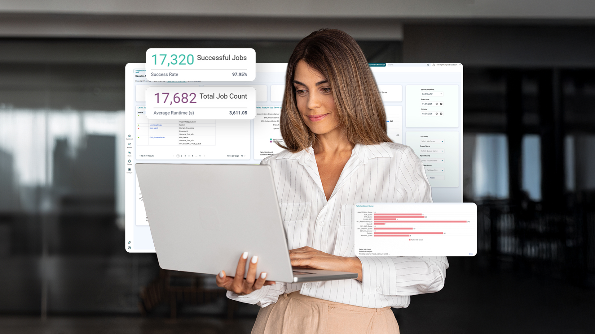 Redwood Insights Premium extends observability beyond IT, transforming automation data into a shared strategic asset. With custom dashboards and extended data retention, teams across the enterprise gain self‑service access to the insights that matter most to them.